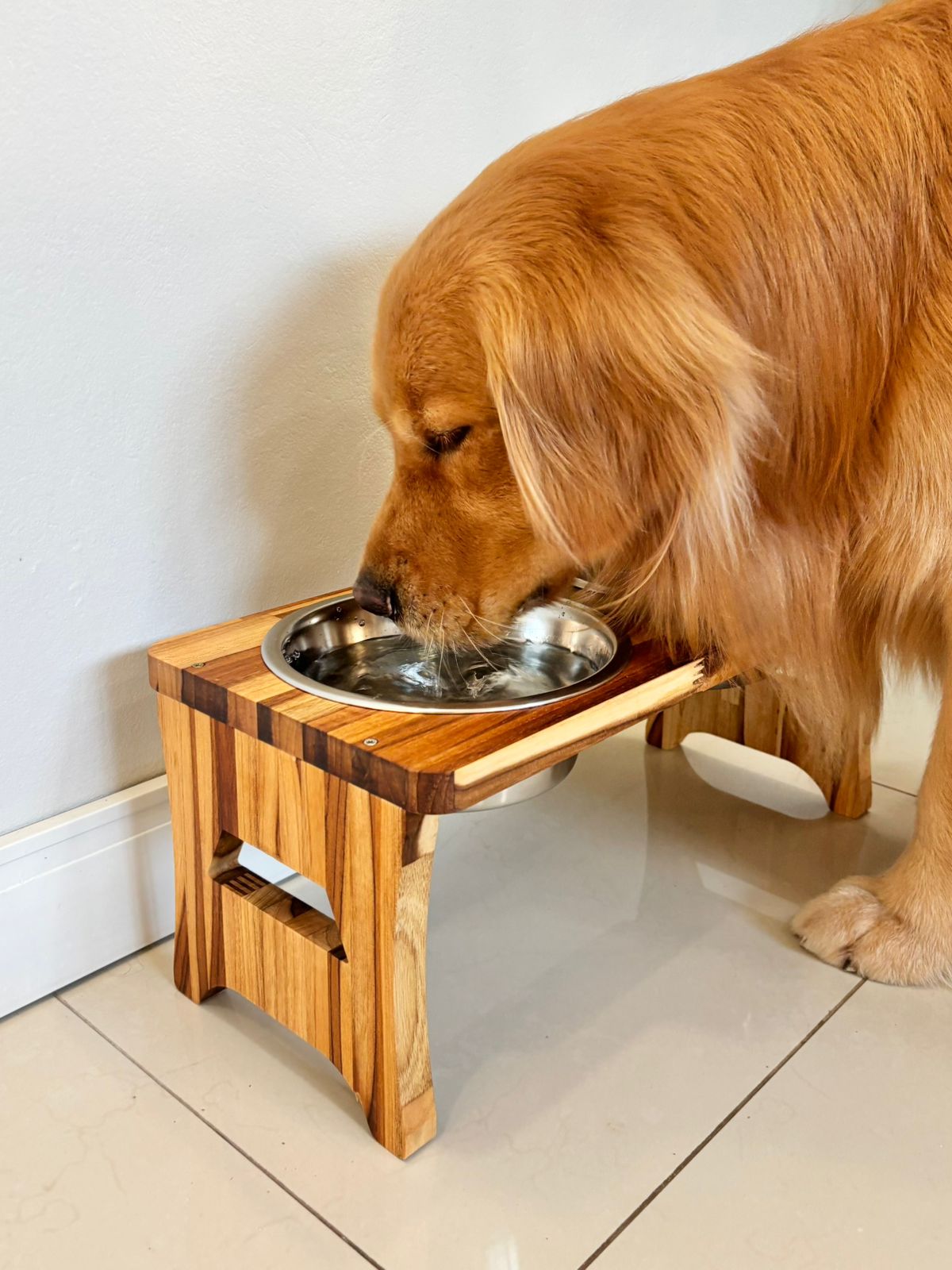 Nosso comedouro pet tamanho GRANDE foi desenvolvido para unir praticidade, estilo e muito carinho. Produzido em madeira de alta qualidade e acompanhado de tigelas de inox, ele é resistente, fácil de limpar e perfeito para pets de grande porte.