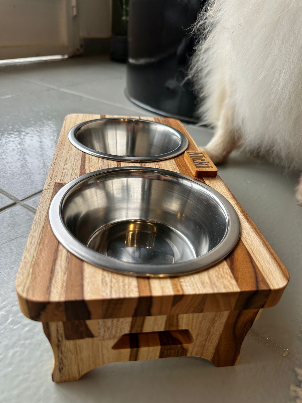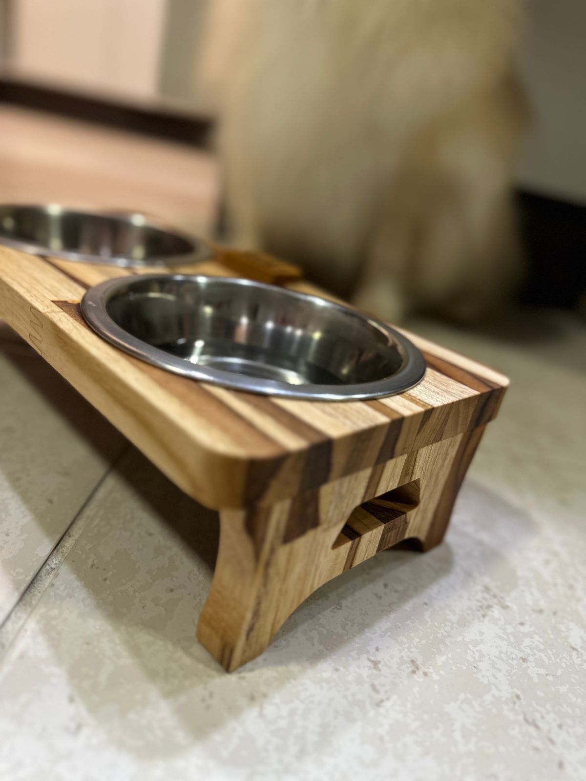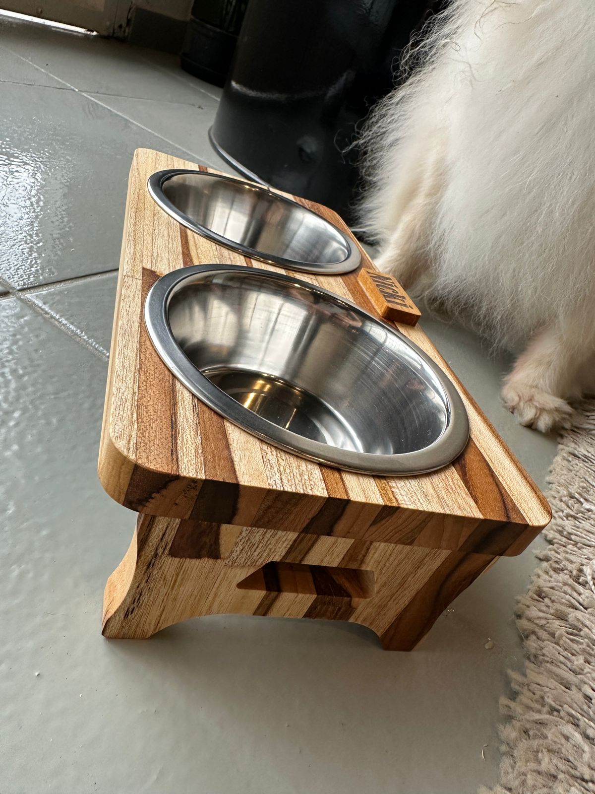 Nosso comedouro pet tamanho P foi desenvolvido para unir praticidade, estilo e muito carinho. Produzido em madeira de alta qualidade e acompanhado de tigelas de inox, ele é resistente, fácil de limpar e perfeito para pets de pequeno porte.