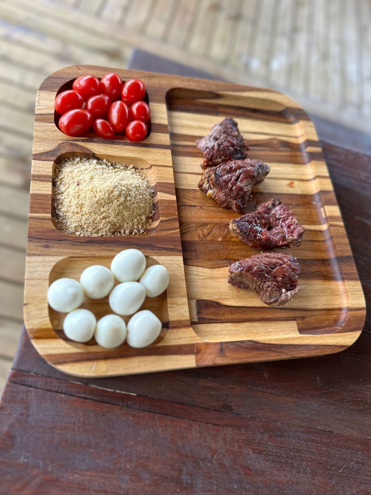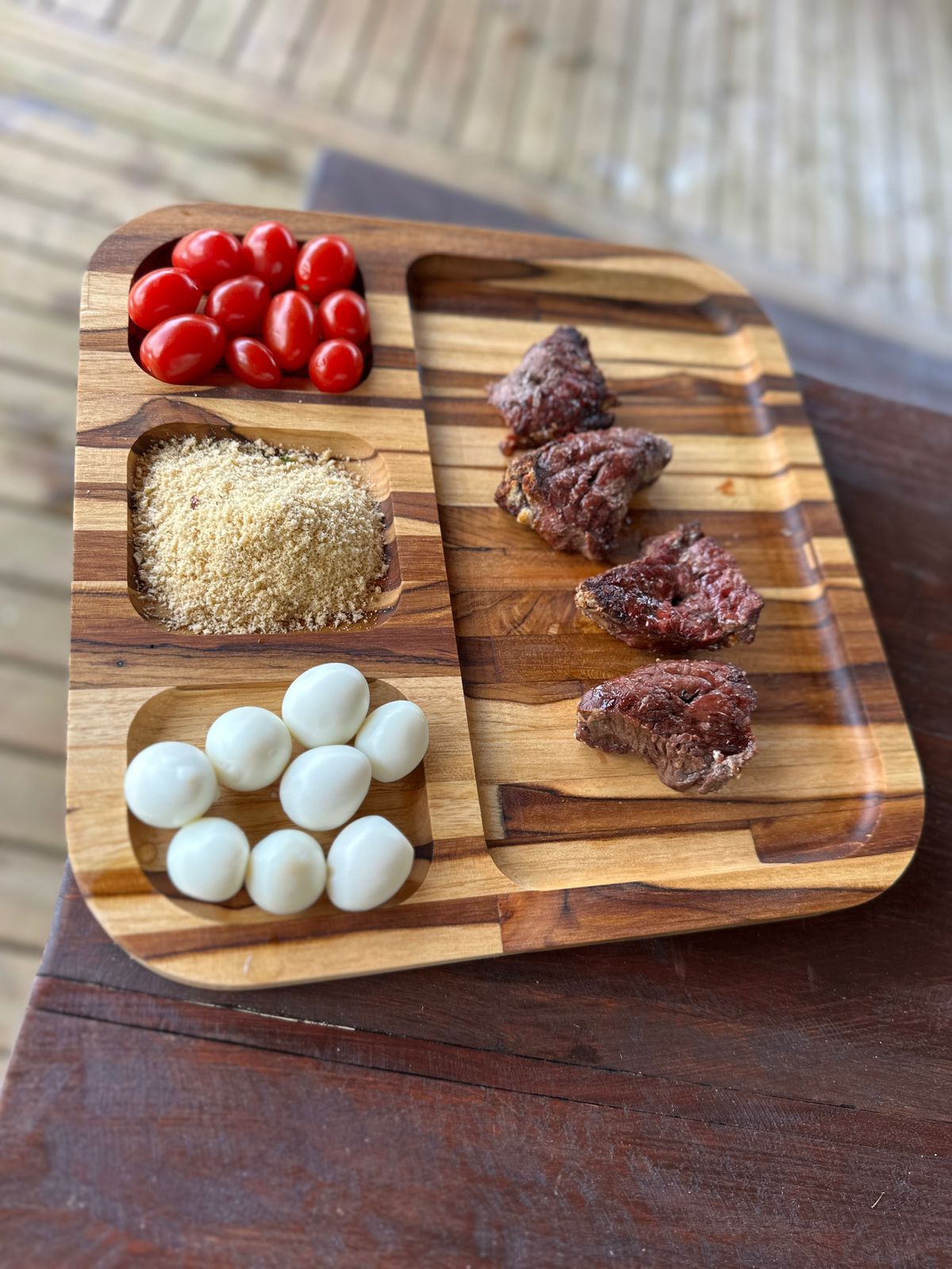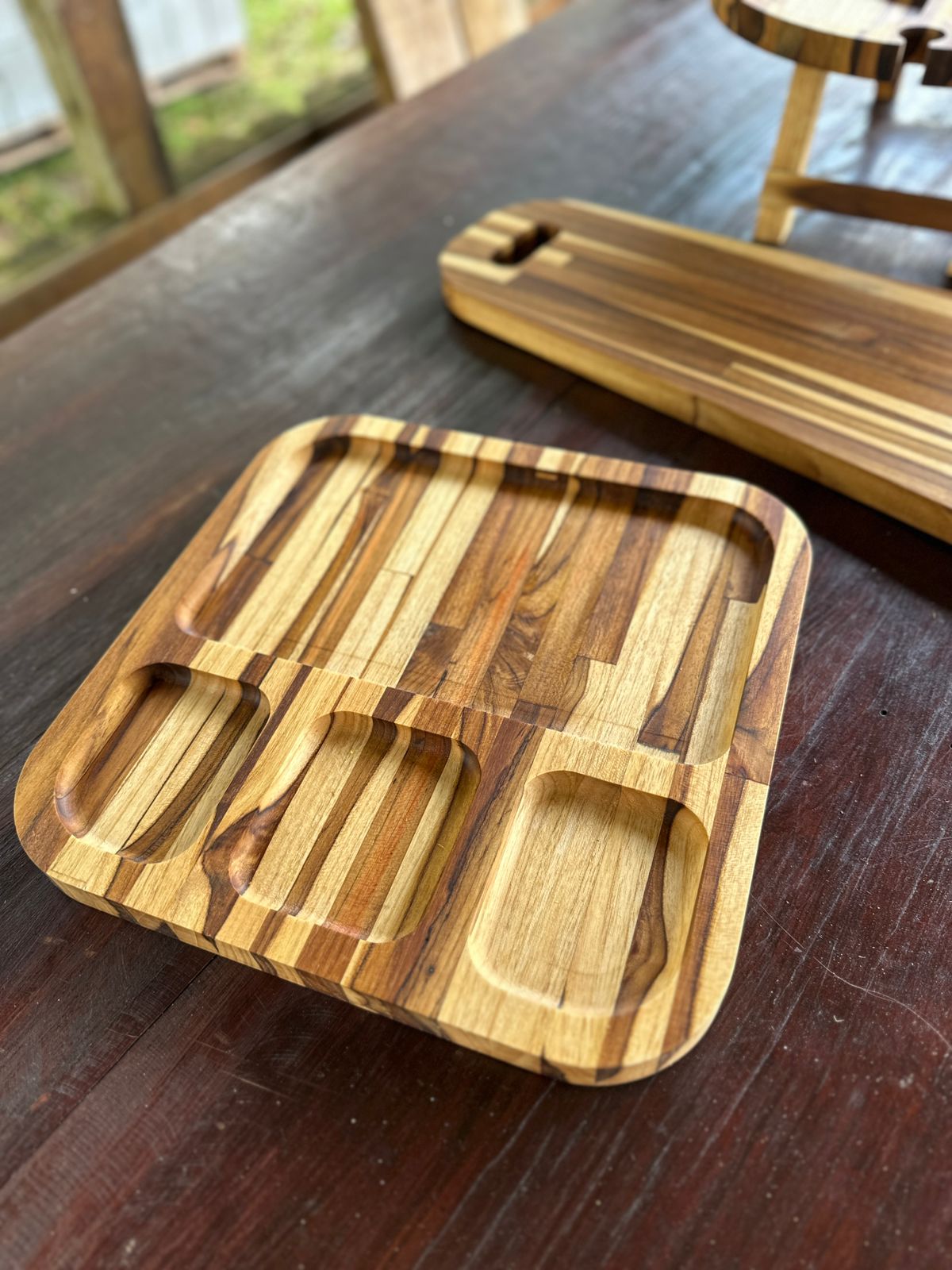 Petisqueira 2 em 1 em Madeira Teca – 29 cm com 4 Espaços