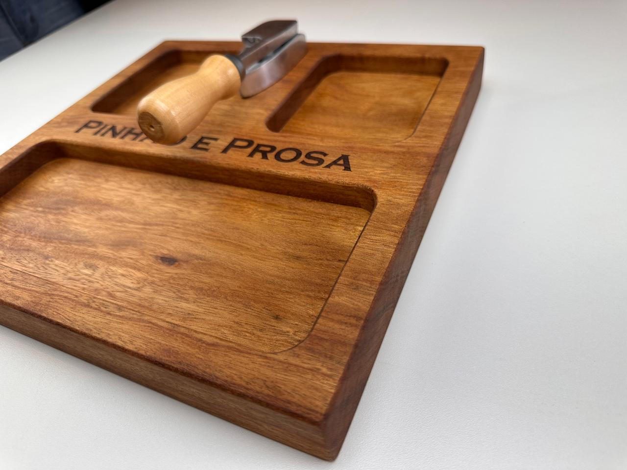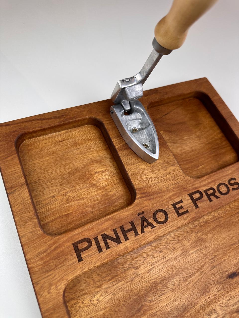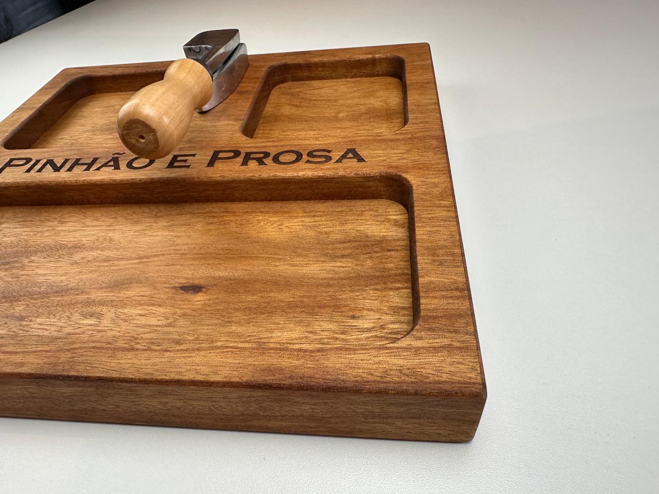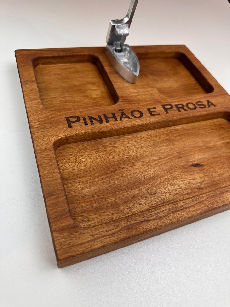 Nossa tábua para pinhão (30x30x3,5 cm) foi desenvolvida para deixar tudo mais prático e especial: com espaços para a casca, o pinhão e o pinhão cozido, ela organiza e valoriza cada detalhe desse ritual.